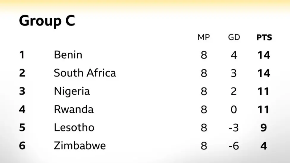 Only the group winners are assured of reaching next year’s tournament in north and central America. It has however given the Super Eagles of Nigeria and Rwanda of reaching the finals. They both of them are now three points below Benin and South Africa.
